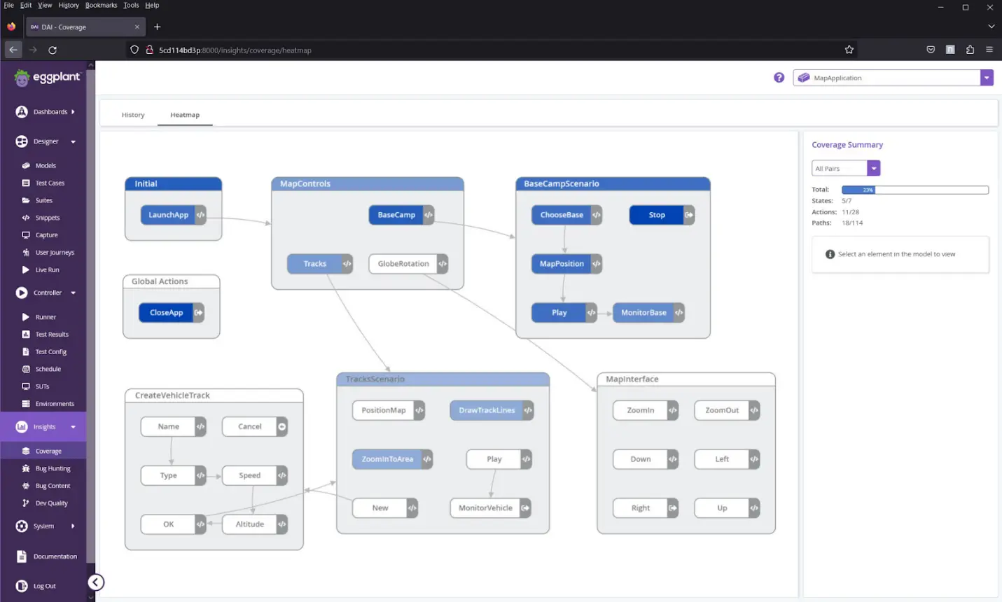 Eggplant'ın AI destekli bilgisayar görüşü, bir insan kullanıcı gibi kullanıcı arayüzlerini görmesini ve bunlarla etkileşime girmesini sağlar. Optik karakter tanıma ve grafik öğe tanıma özelliklerini içerir.Eggplant, test oluşturmayı optimize etmek ve hızlandırmak için AI ile birlikte model tabanlı testleri kullanır. AI mantığı ve veri setlerini (gerçek kullanıcı yolculukları, test kapsamı ve geçmiş test hataları gibi) yeni test oluşturmayı yönlendirmek için kullanarak, mutlu yol testinin çok ötesine geçer.