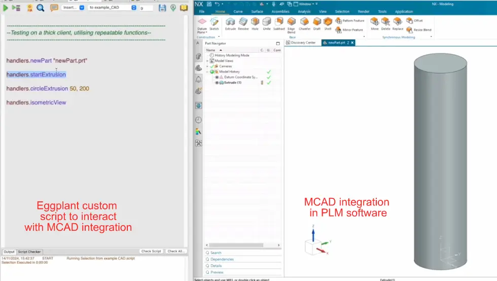 Şekil 5. Eggplant kullanarak PLM-CAD entegrasyon testi.