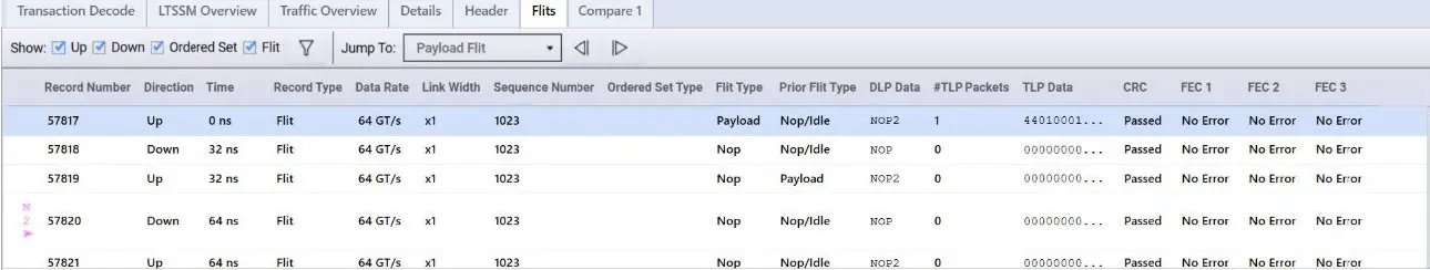 FLIT'ler doğru şekilde gönderiliyor mu? FEC ve CRC sorunlu mu? Bu sorular, aşağıda gösterildiği gibi FLIT görünümünü kontrol ederek yanıtlanabilir.