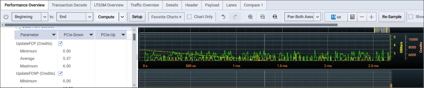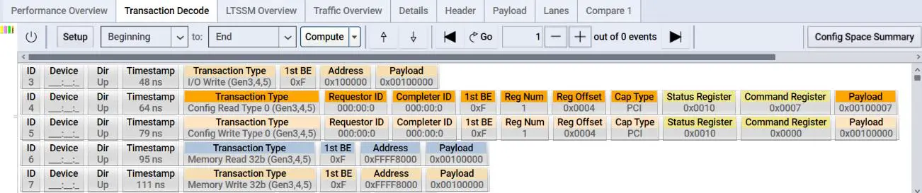 İşlemlerin TLP'leri ve DLLP'leri, aşağıda gösterilen paket görünümü ve trafik genel bakış ekranlarında görüntülenebilir.