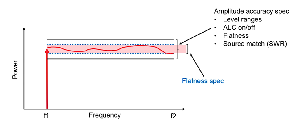 Genlik doğruluğu, sinyal jeneratörünün çıkışının kullanıcı tarafından ayarlanan istenen genliğe yakınlığını karşılaştırır. Filtreleri ve güç amplifikatörlerini test etmek için frekans süpürme örneğini kullanırsak, daha sıkı bir genlik frekansı spesifikasyonuna sahip bir sinyal üreteci seçmek, bir frekans aralığında daha düzgün bir çıkış sağlar. Şekil 1, bir frekans grubu boyunca genlik doğruluğunu belirlerken bir sinyal üretecinin düzlüğünü göstermektedir.