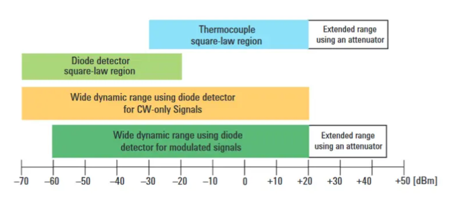 Termokupllar, uygun zayıflatıcılar kullanılarak 75 dBm'ye kadar çıkabilen 50 dBm'lik daha iyi dinamik aralıklara sahiptir.