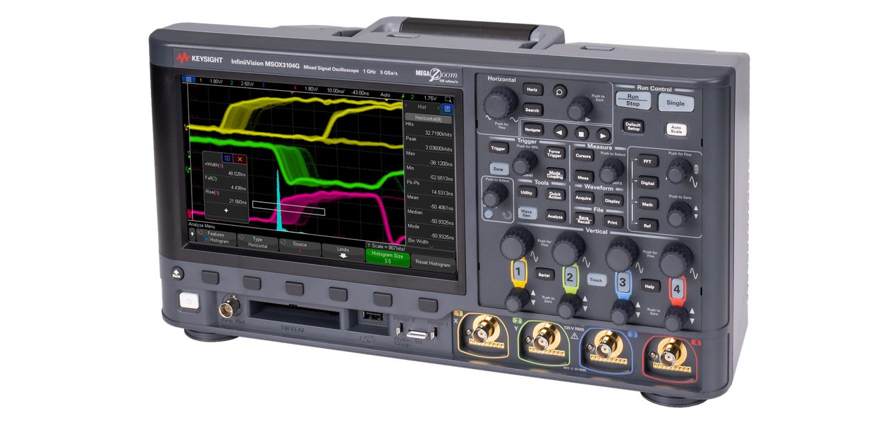 DSOX3012G 100 MHz osiloskop, 2 analog kanal, 4 Mpts bellek, 1.000.000 dalga biçimi/sn güncelleme hızı, 8,5 inç kapasitif dokunmatik ekranlı bölge dokunmatik tetikleyici ve dalga biçimi ve ölçüm histogramlarına sahip standart gömülü yazılım sağlar.